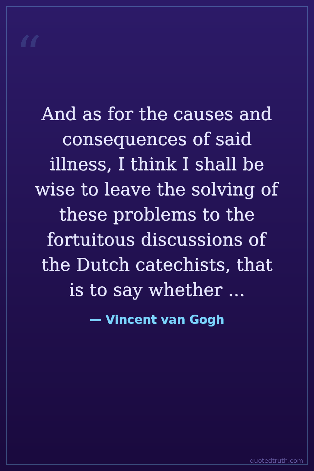 And as for the causes and consequences of said illness, I think I shall be wise to leave the solving of these problems to the fortuitous discussions of the Dutch catechists, that is to say whether I am mad or not, or whether I have been mad, and am still mad, in some imagination of a purely sculptural nature.
