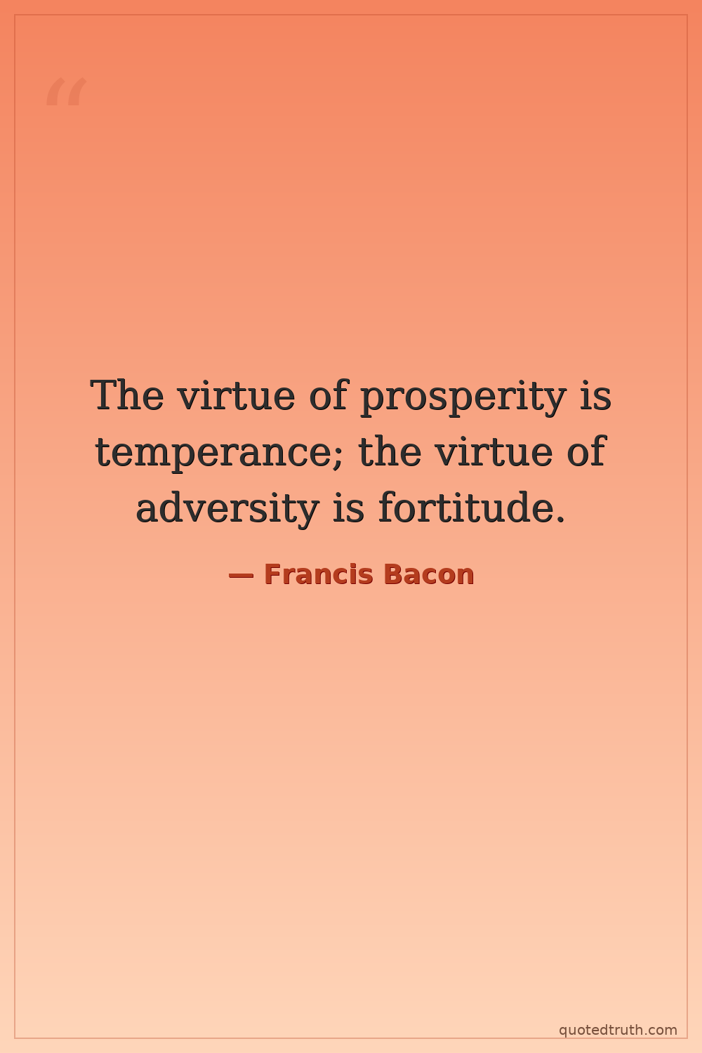 The virtue of prosperity is temperance; the virtue of adversity is fortitude.