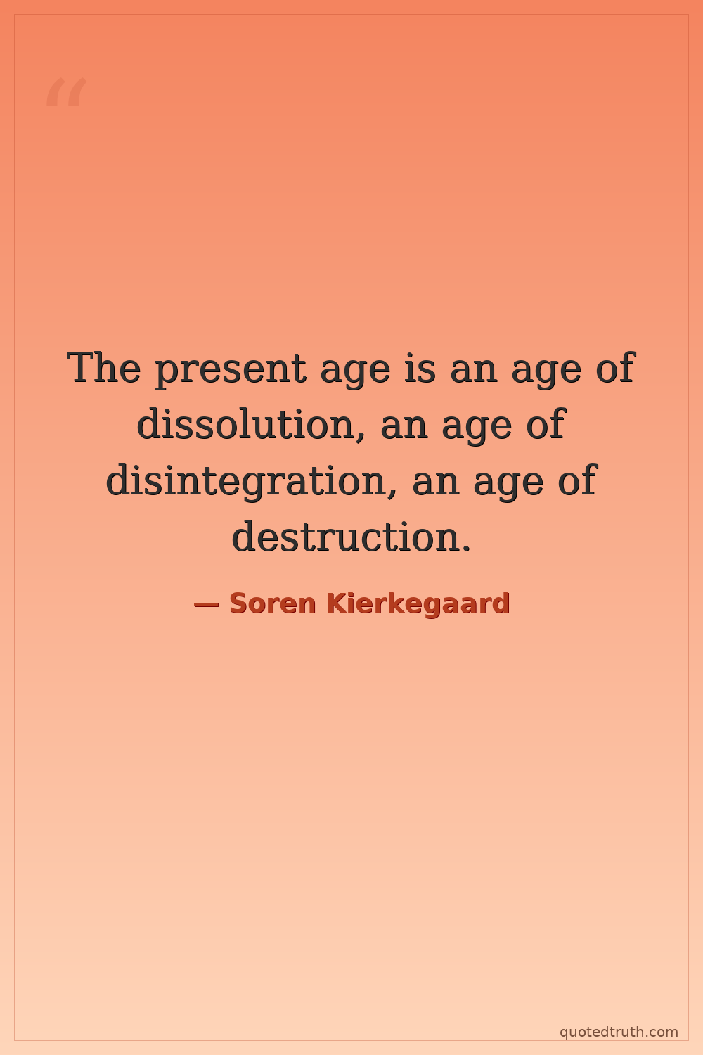 The present age is an age of dissolution, an age of disintegration, an age of destruction.
