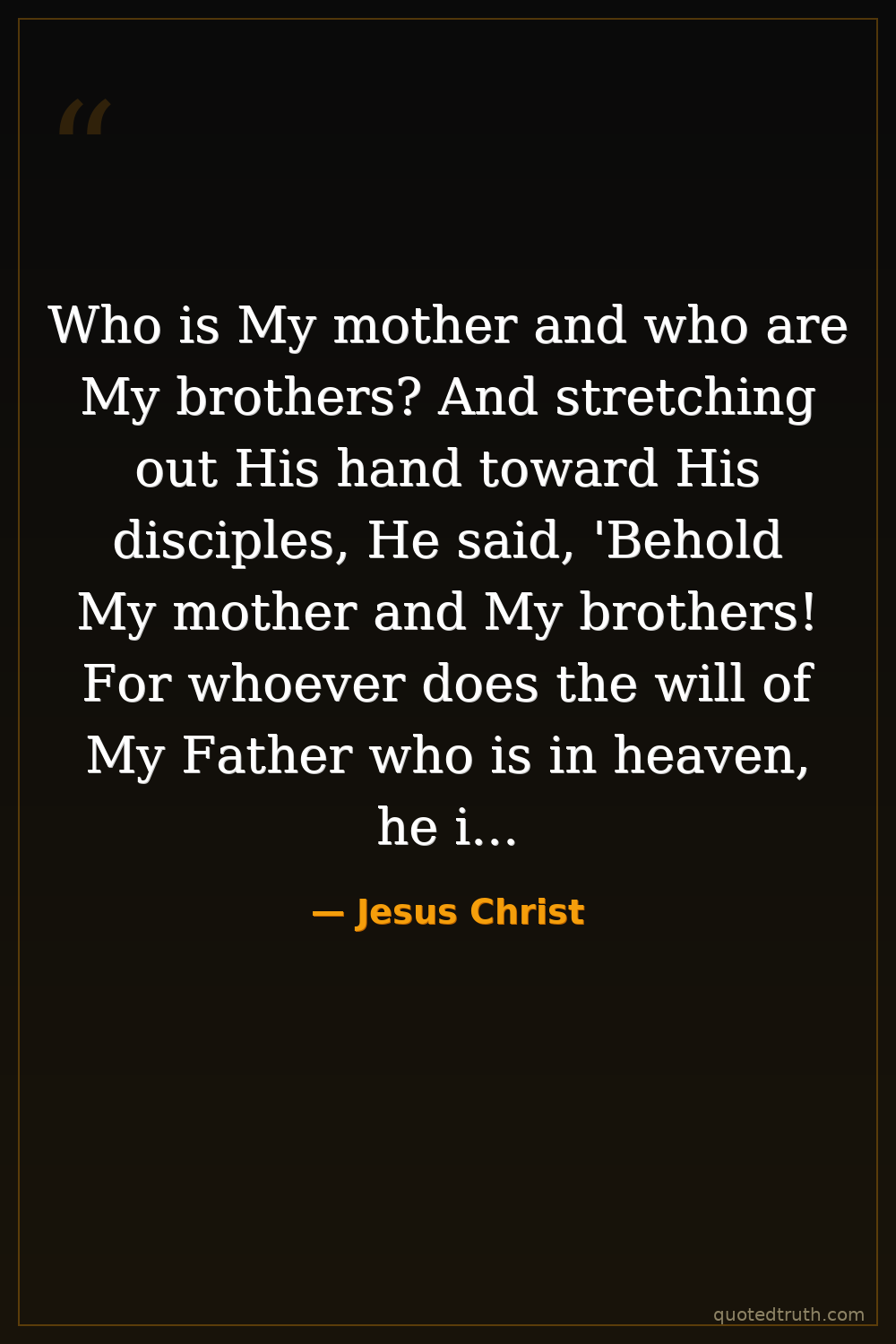 Who is My mother and who are My brothers? And stretching out His hand toward His disciples, He said, 'Behold My mother and My brothers! For whoever does the will of My Father who is in heaven, he is My brother and sister and mother.'
