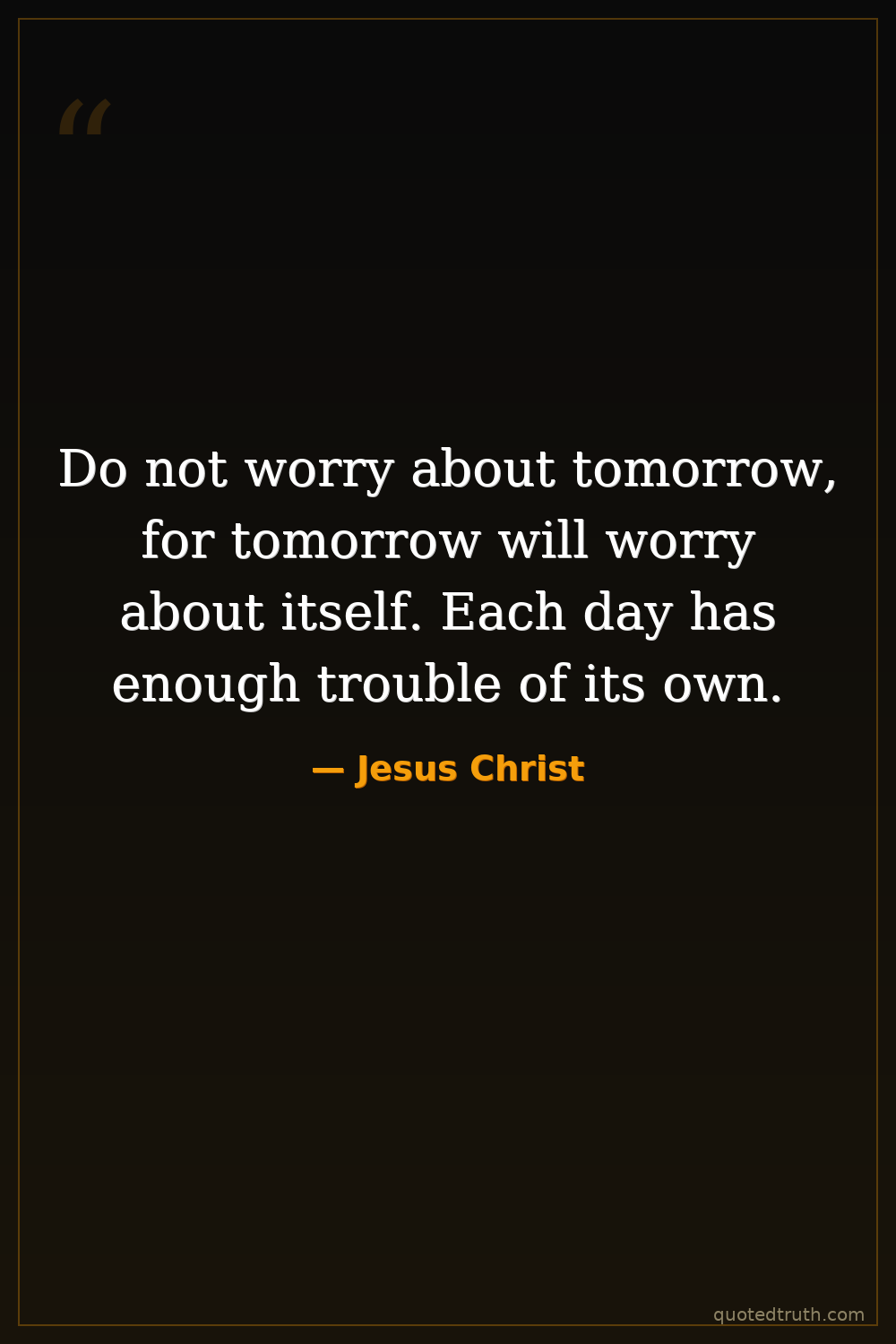 Do not worry about tomorrow, for tomorrow will worry about itself. Each day has enough trouble of its own.