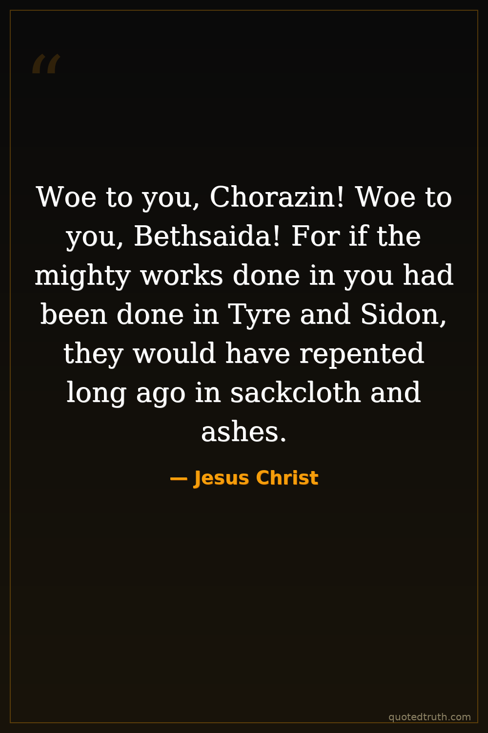 Woe to you, Chorazin! Woe to you, Bethsaida! For if the mighty works done in you had been done in Tyre and Sidon, they would have repented long ago in sackcloth and ashes.