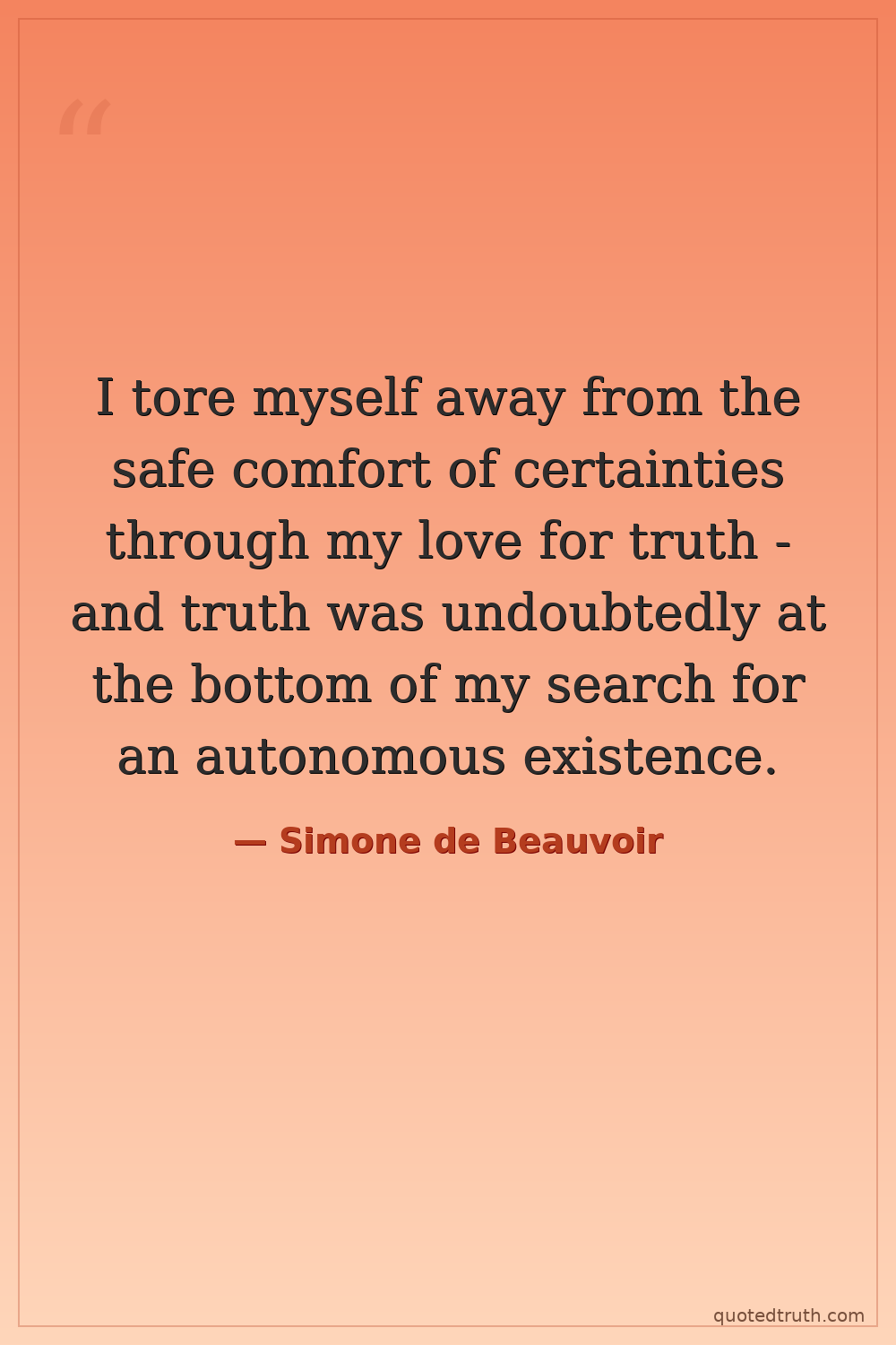 I tore myself away from the safe comfort of certainties through my love for truth - and truth was undoubtedly at the bottom of my search for an autonomous existence.