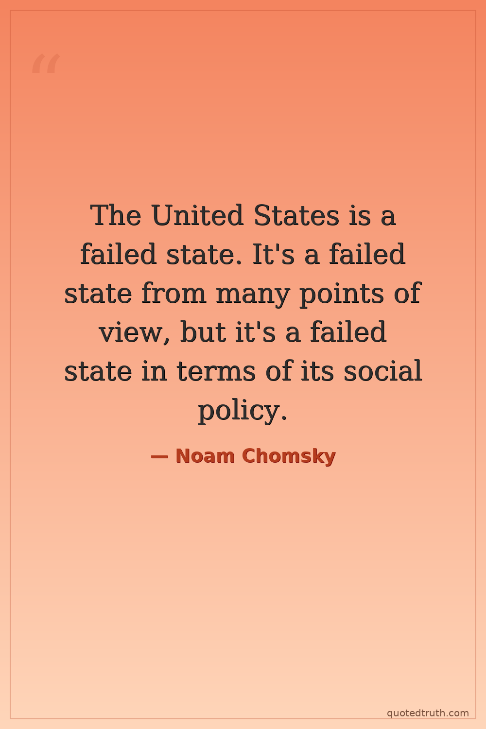 The United States is a failed state. It's a failed state from many points of view, but it's a failed state in terms of its social policy.