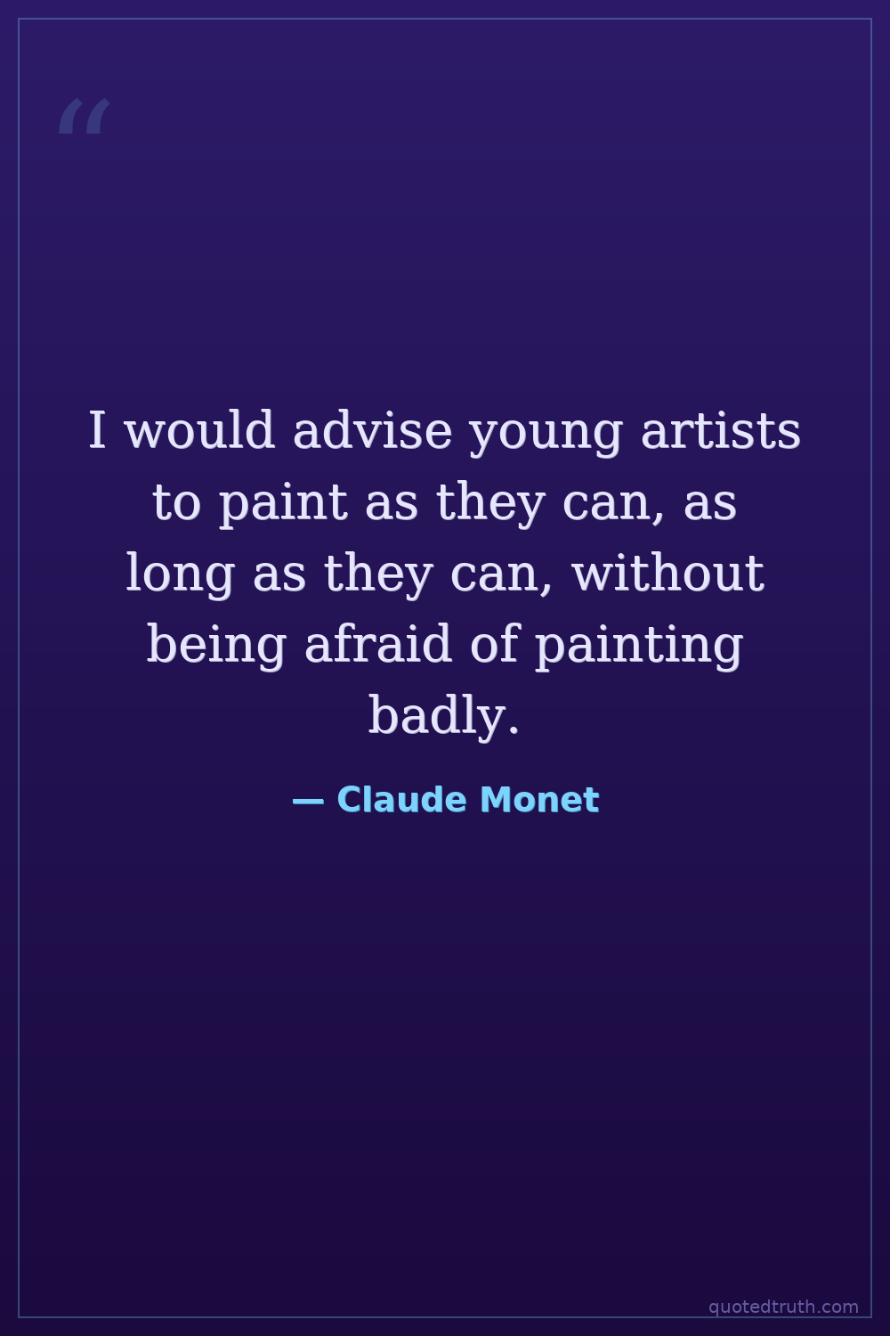 I would advise young artists to paint as they can, as long as they can, without being afraid of painting badly.
