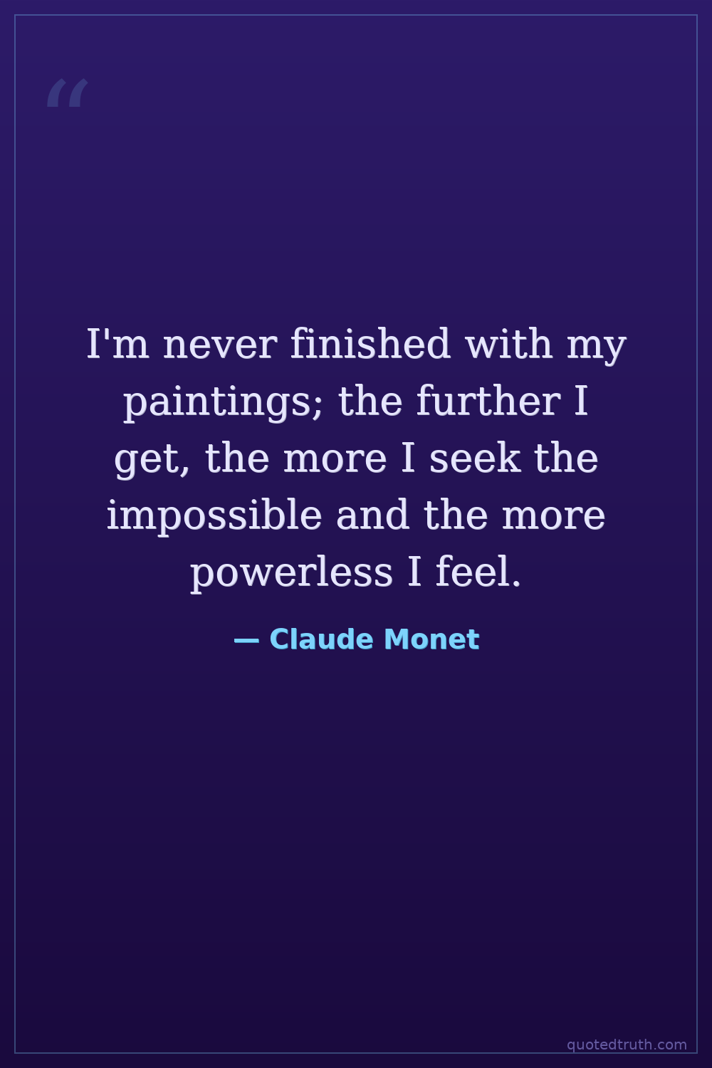 I'm never finished with my paintings; the further I get, the more I seek the impossible and the more powerless I feel.