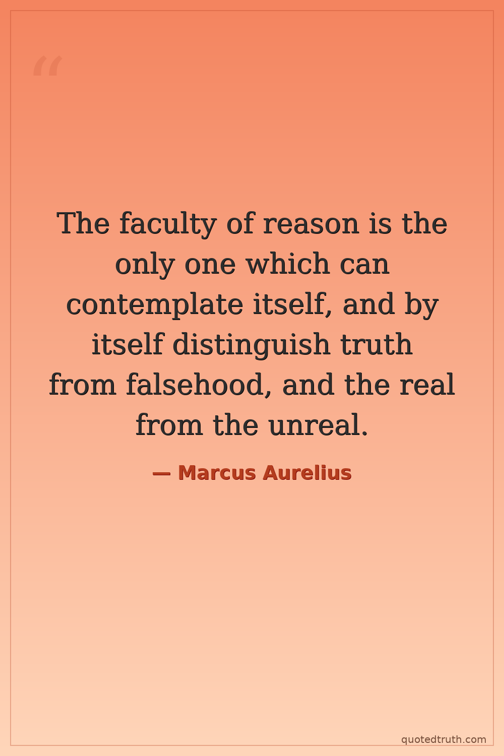 The faculty of reason is the only one which can contemplate itself, and by itself distinguish truth from falsehood, and the real from the unreal.