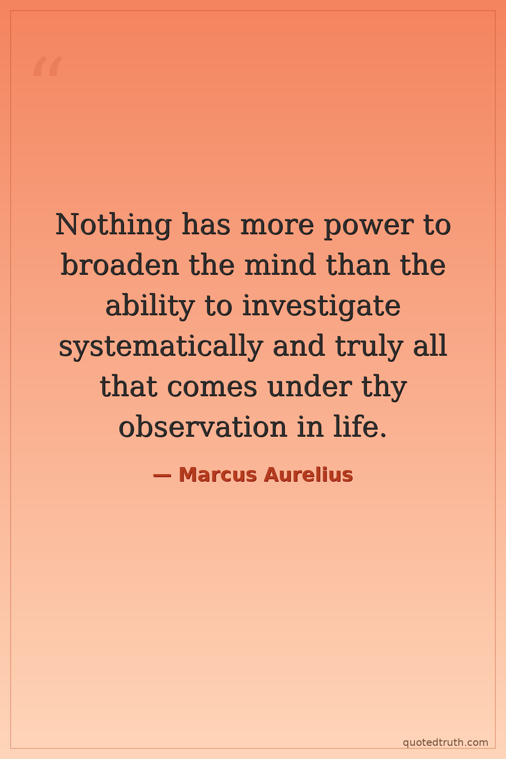 Nothing has more power to broaden the mind than the ability to investigate systematically and truly all that comes under thy observation in life.