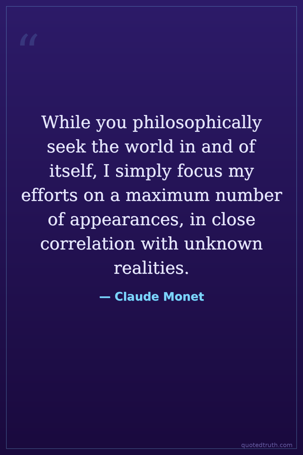 While you philosophically seek the world in and of itself, I simply focus my efforts on a maximum number of appearances, in close correlation with unknown realities.
