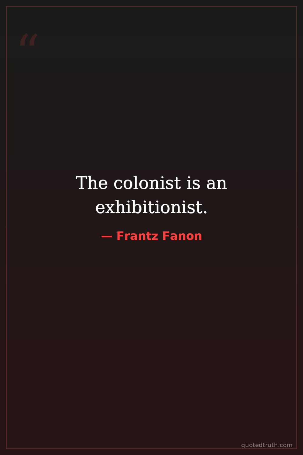 Controversial"To speak means to be in a position to use a certain syntax, to grasp the morphology of this or that language, but it means above all to assume a culture, to support the weight of a civilization."