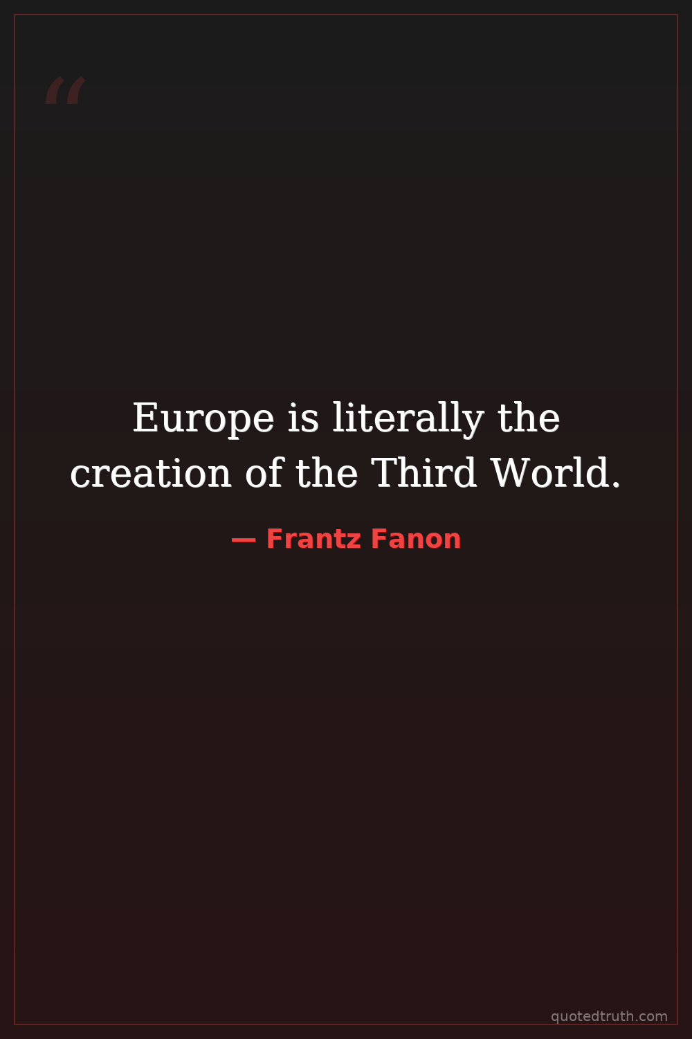 Controversial"Imperialism leaves behind it, here and there, little clusters of Europeans who, living in an unreal way, begin to feel the need of a fictive superstructure which conceals their alienation."