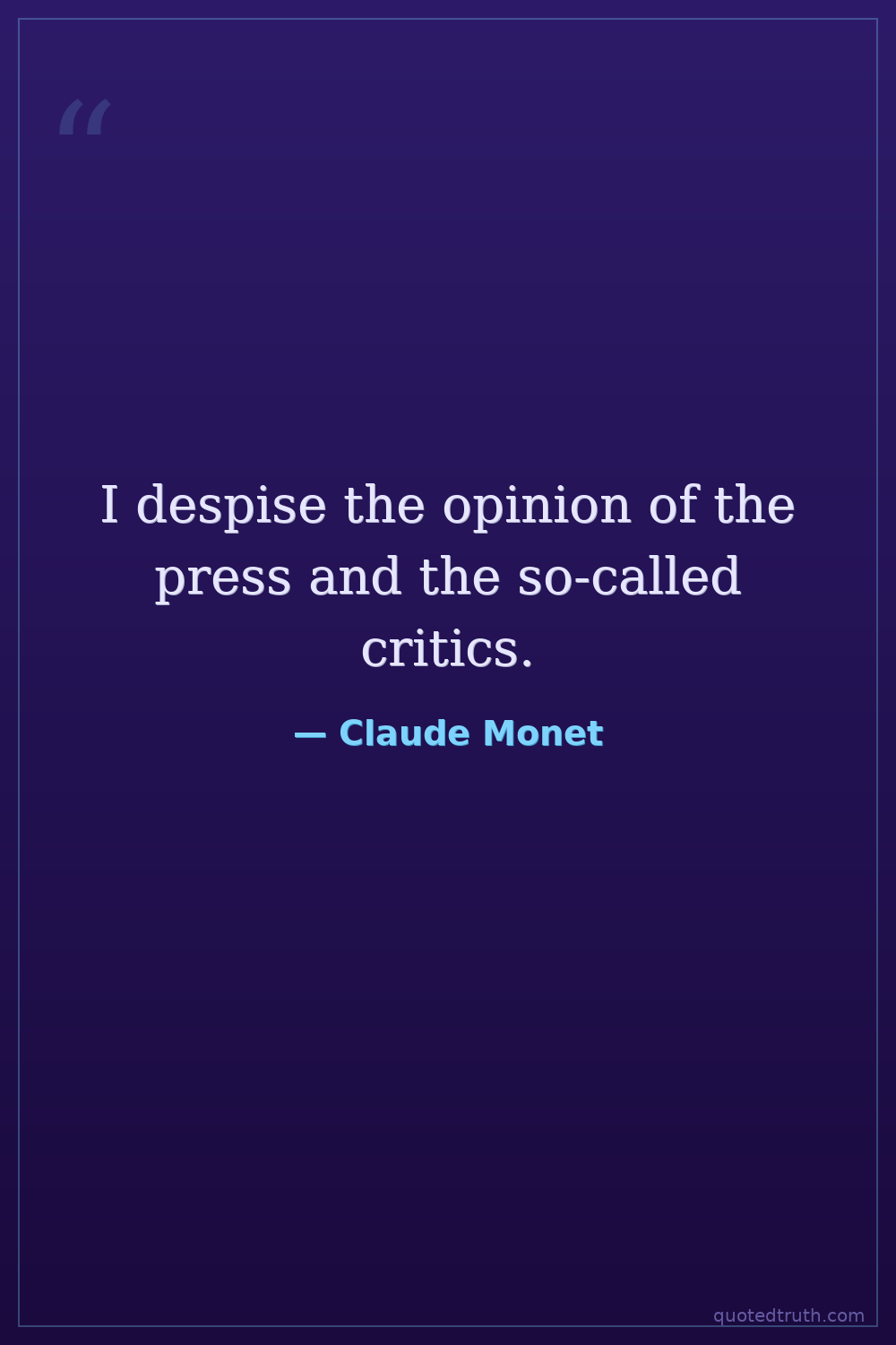I despise the opinion of the press and the so-called critics.