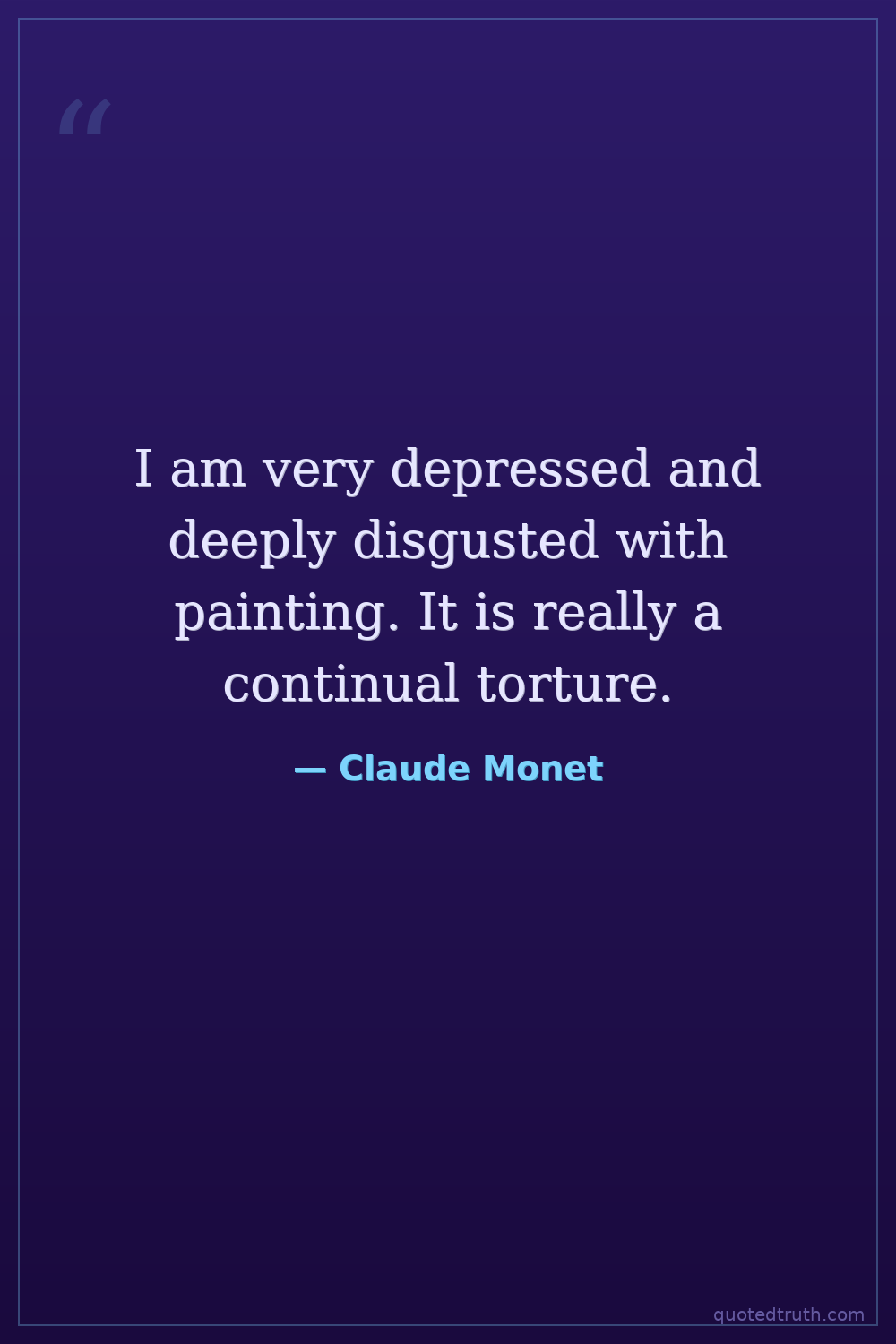 I am very depressed and deeply disgusted with painting. It is really a continual torture.