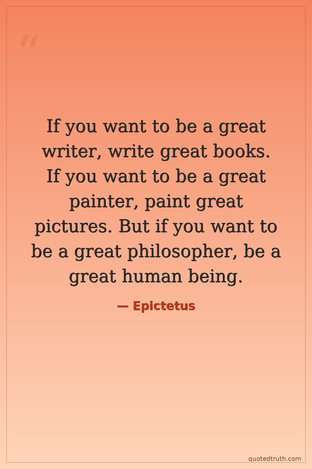 If you want to be a great writer, write great books. If you want to be a great painter, paint great pictures. But if you want to be a great philosopher, be a great human being.