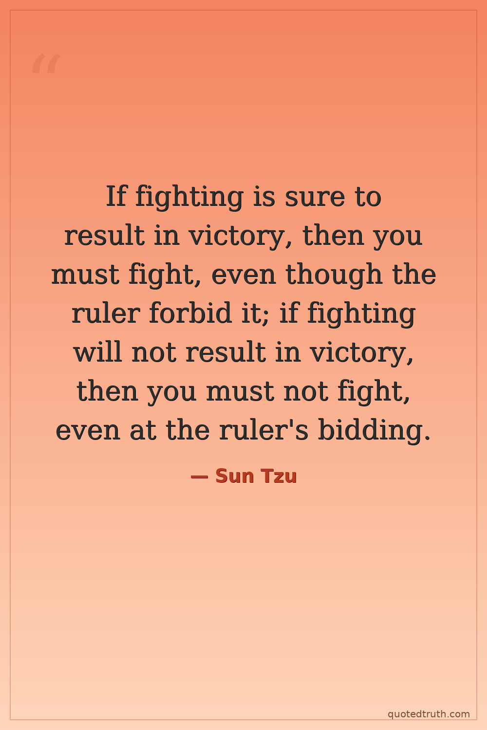 If fighting is sure to result in victory, then you must fight, even though the ruler forbid it; if fighting will not result in victory, then you must not fight, even at the ruler's bidding.