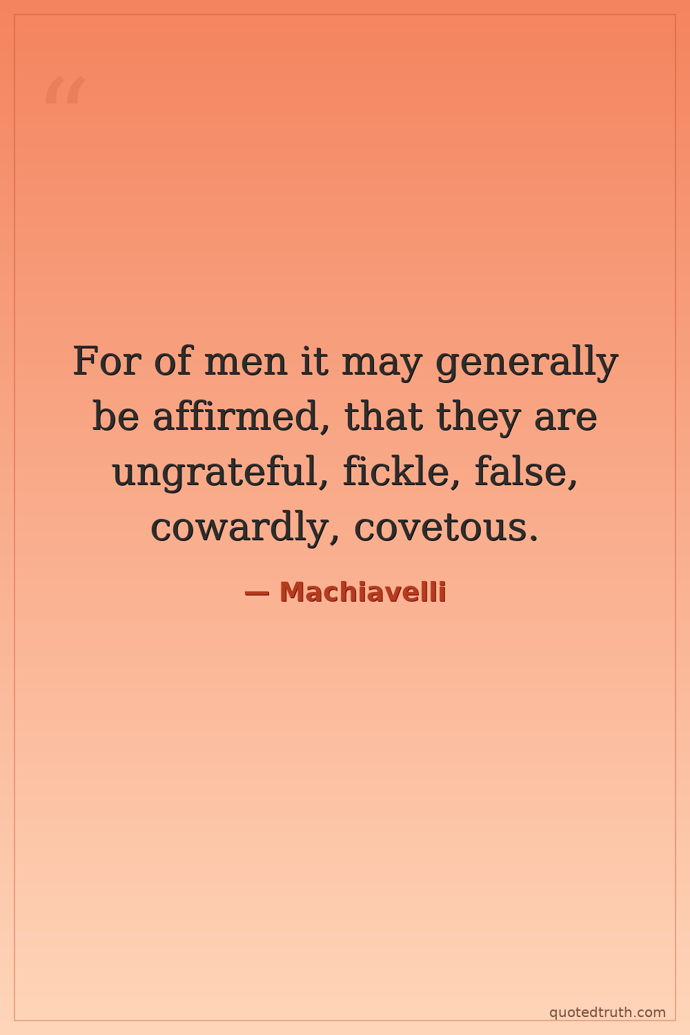 For of men it may generally be affirmed, that they are ungrateful, fickle, false, cowardly, covetous.