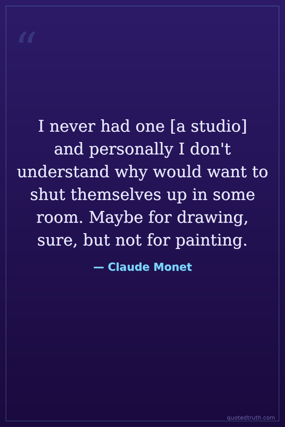 I never had one [a studio] and personally I don't understand why would want to shut themselves up in some room. Maybe for drawing, sure, but not for painting.