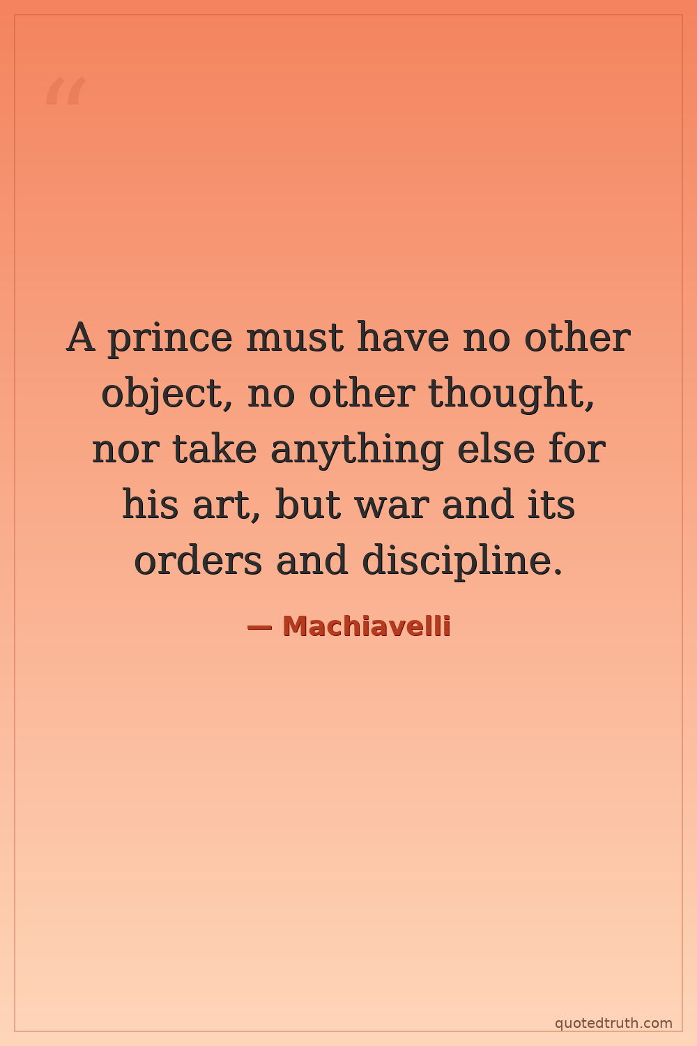 A prince must have no other object, no other thought, nor take anything else for his art, but war and its orders and discipline.