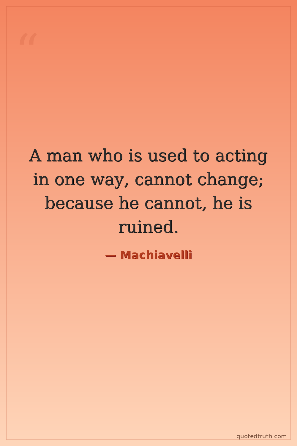 A man who is used to acting in one way, cannot change; because he cannot, he is ruined.