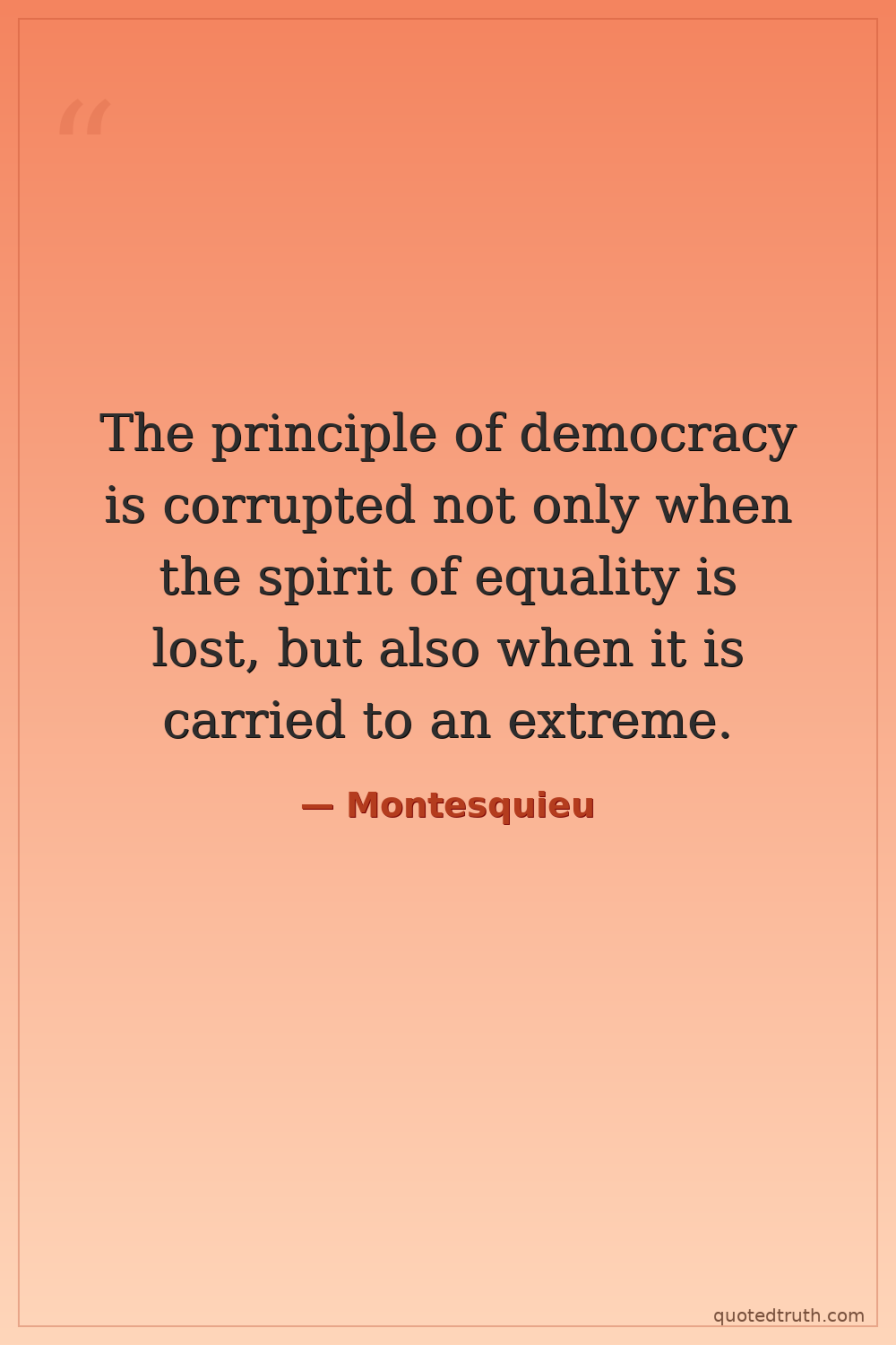The principle of democracy is corrupted not only when the spirit of equality is lost, but also when it is carried to an extreme.