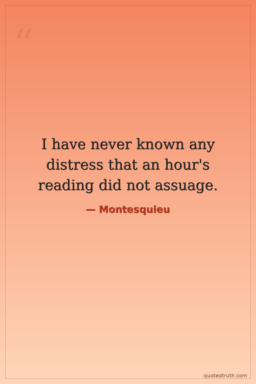 I have never known any distress that an hour's reading did not assuage.