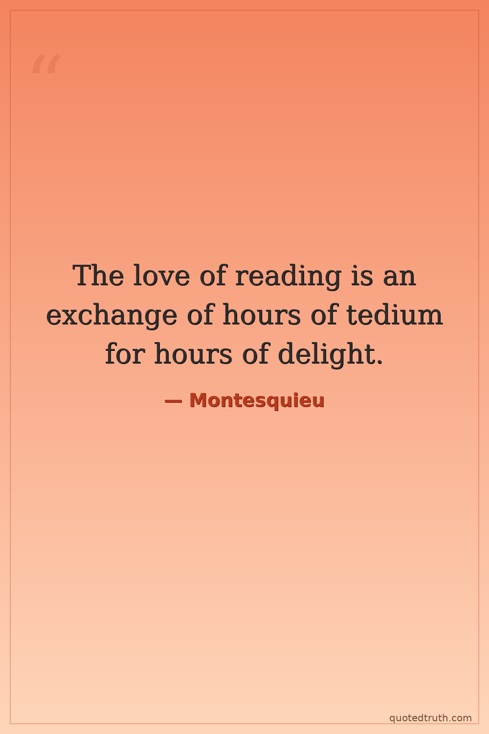 The love of reading is an exchange of hours of tedium for hours of delight.