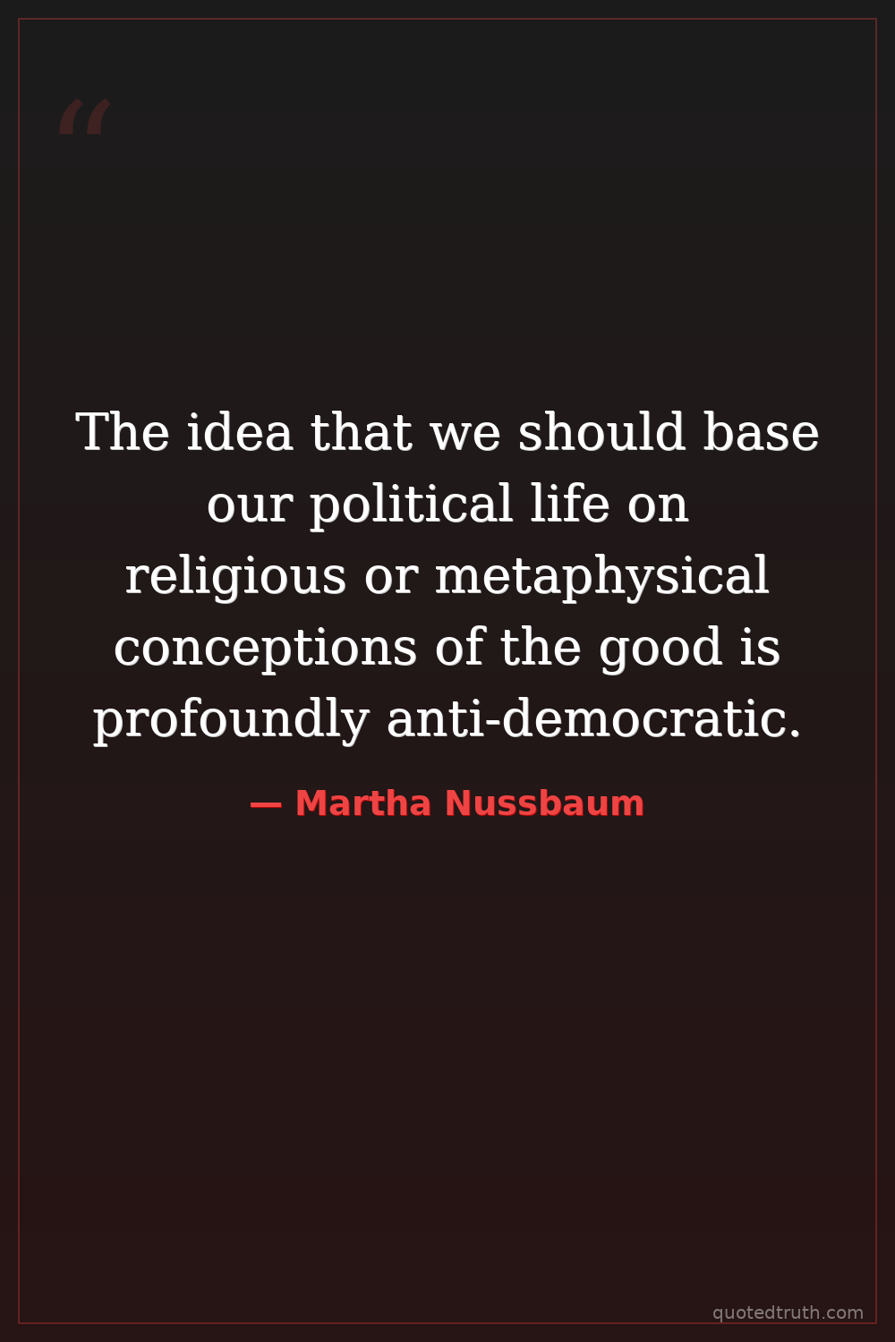 The idea that we should base our political life on religious or metaphysical conceptions of the good is profoundly anti-democratic.