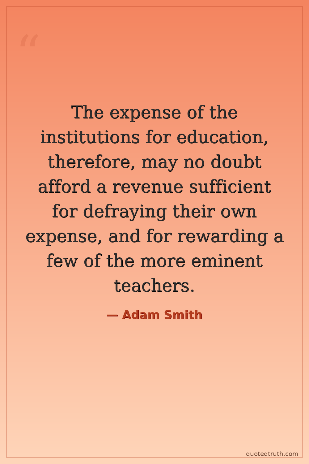 The expense of the institutions for education, therefore, may no doubt afford a revenue sufficient for defraying their own expense, and for rewarding a few of the more eminent teachers.