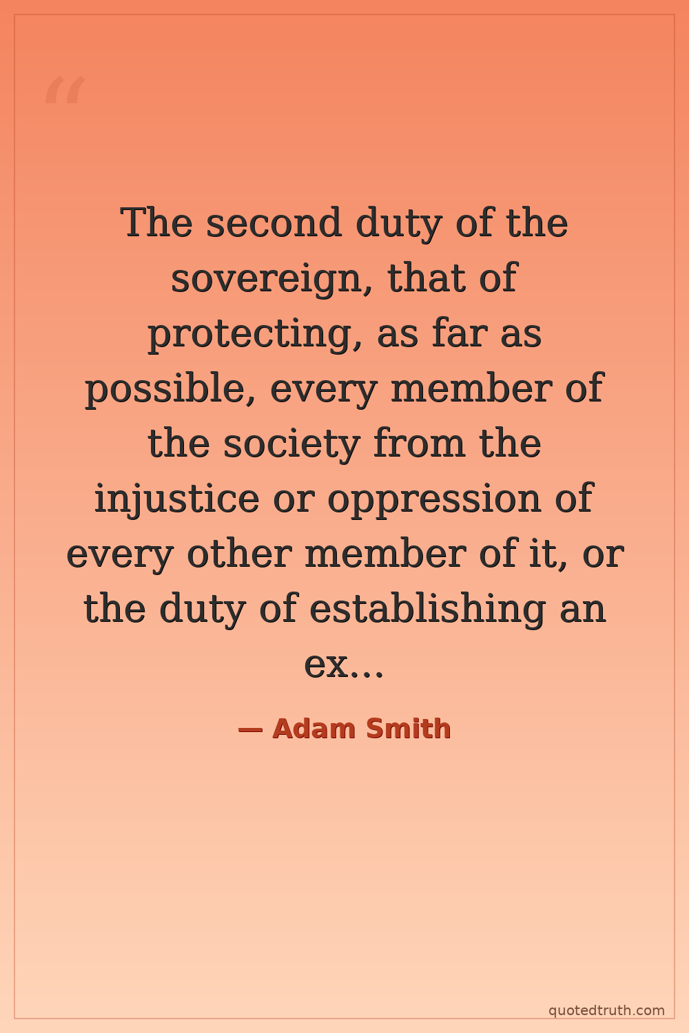 The second duty of the sovereign, that of protecting, as far as possible, every member of the society from the injustice or oppression of every other member of it, or the duty of establishing an exact administration of justice.