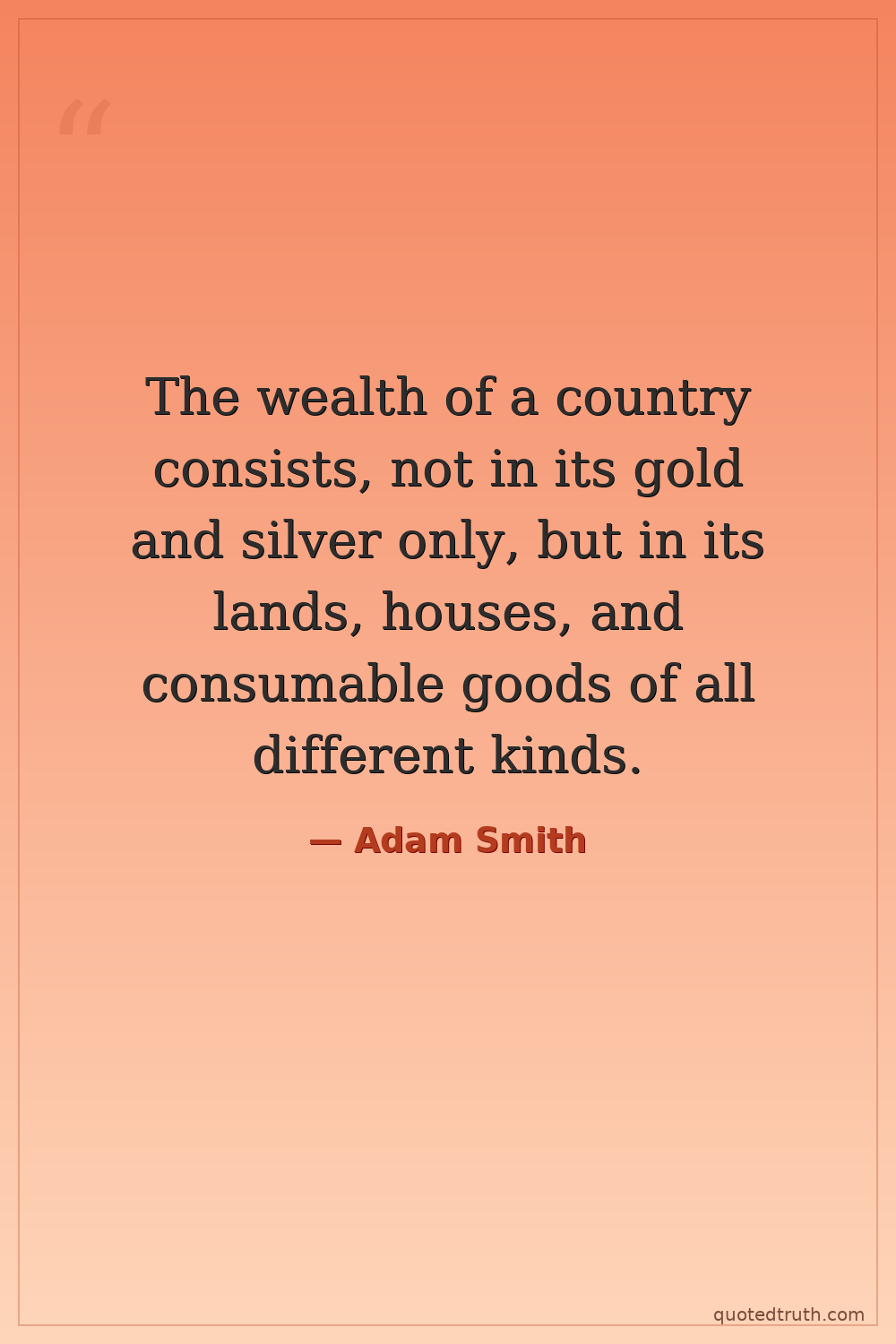 The wealth of a country consists, not in its gold and silver only, but in its lands, houses, and consumable goods of all different kinds.