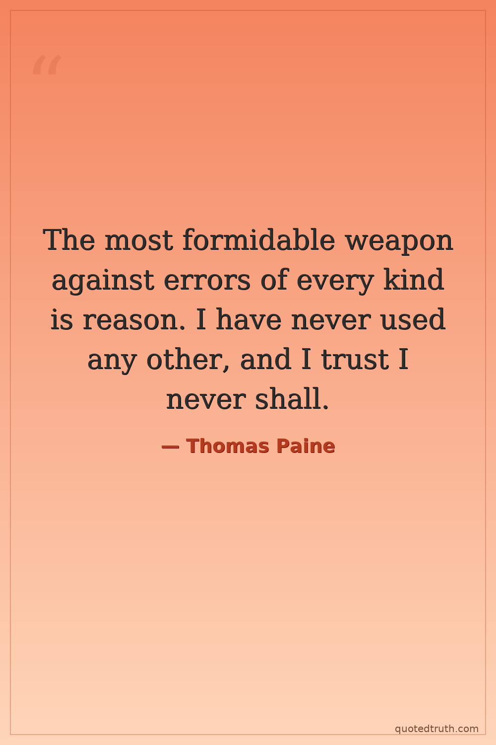 The most formidable weapon against errors of every kind is reason. I have never used any other, and I trust I never shall.