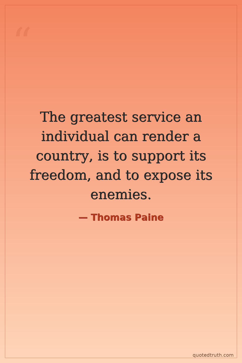 The greatest service an individual can render a country, is to support its freedom, and to expose its enemies.