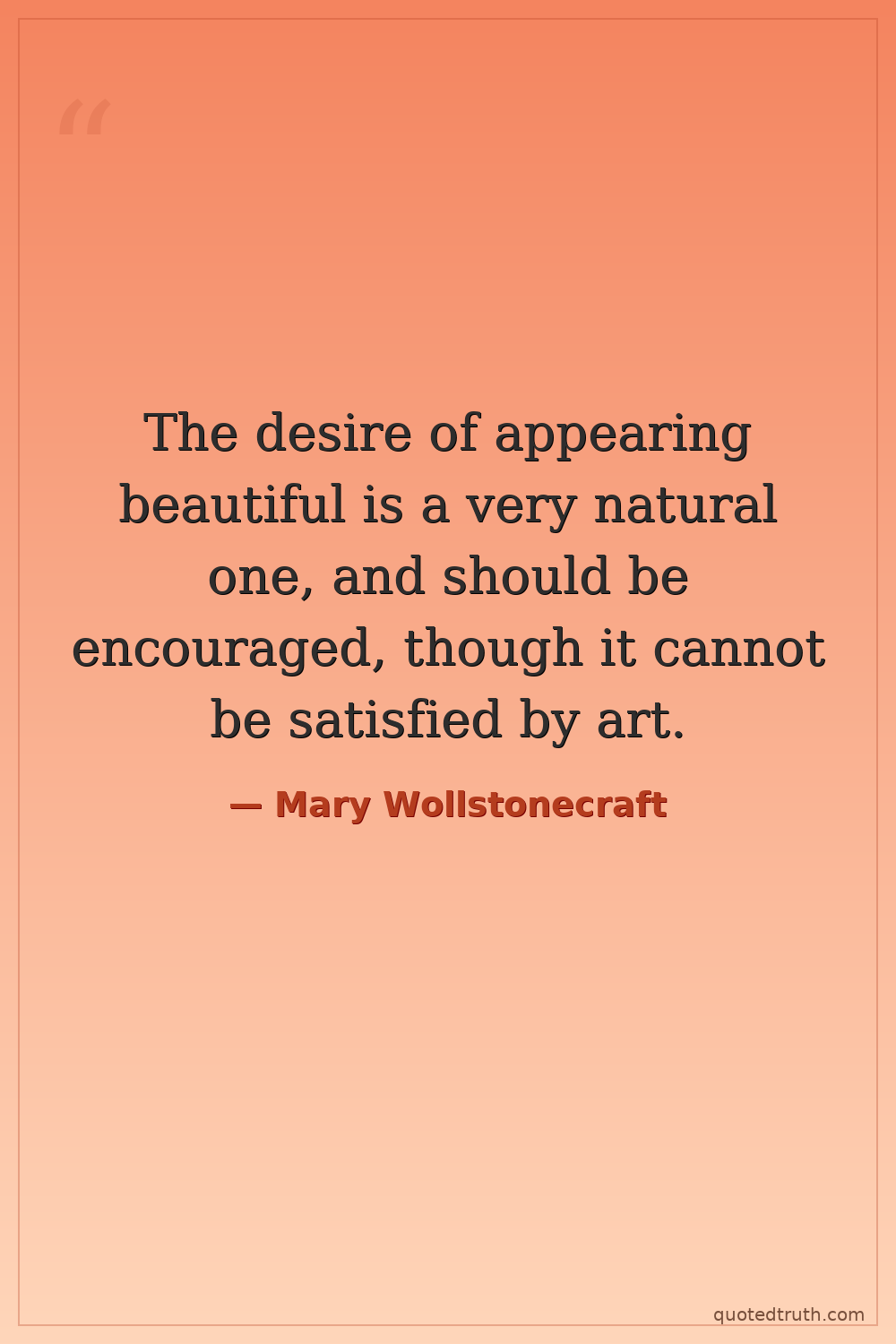 The desire of appearing beautiful is a very natural one, and should be encouraged, though it cannot be satisfied by art.