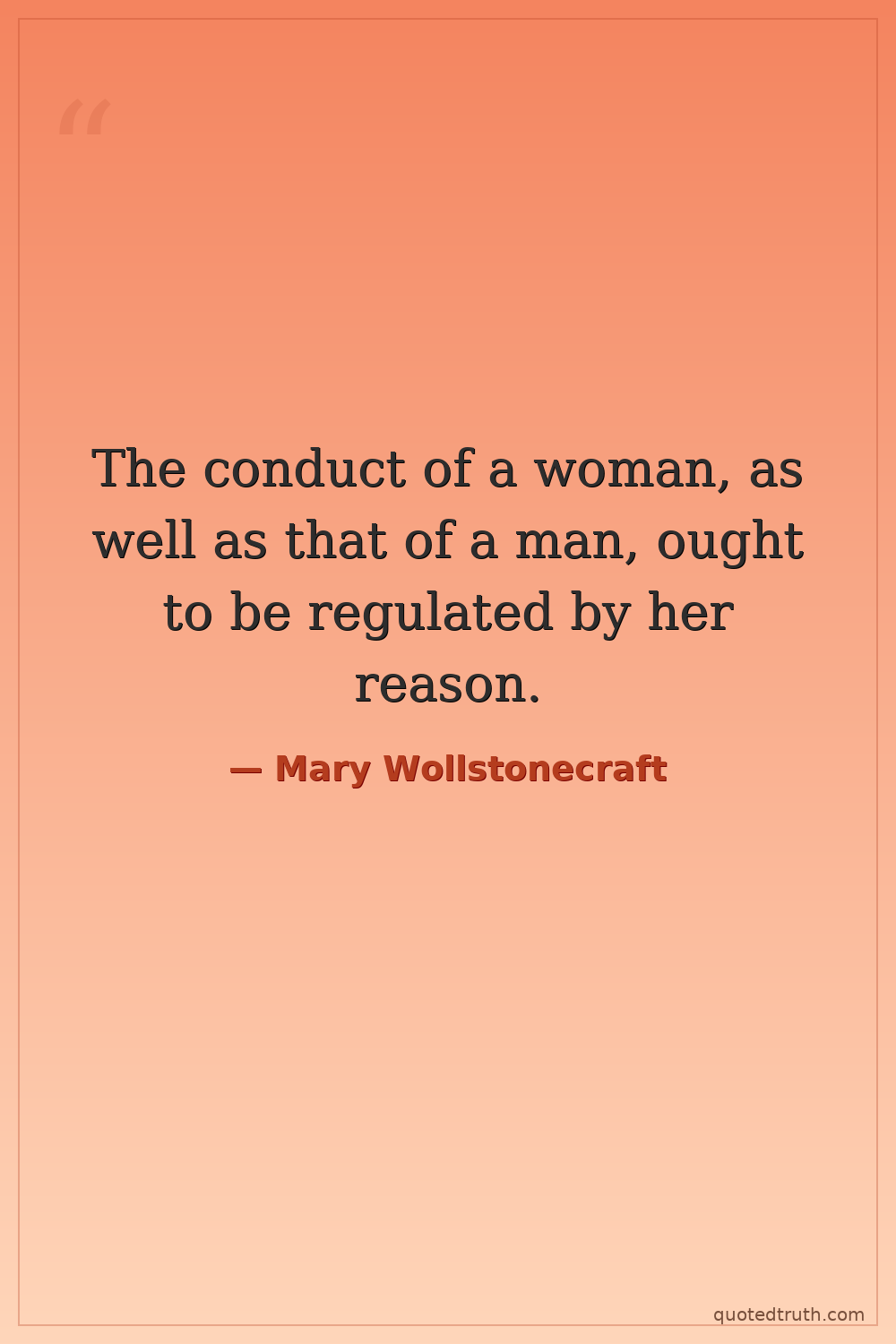 The conduct of a woman, as well as that of a man, ought to be regulated by her reason.