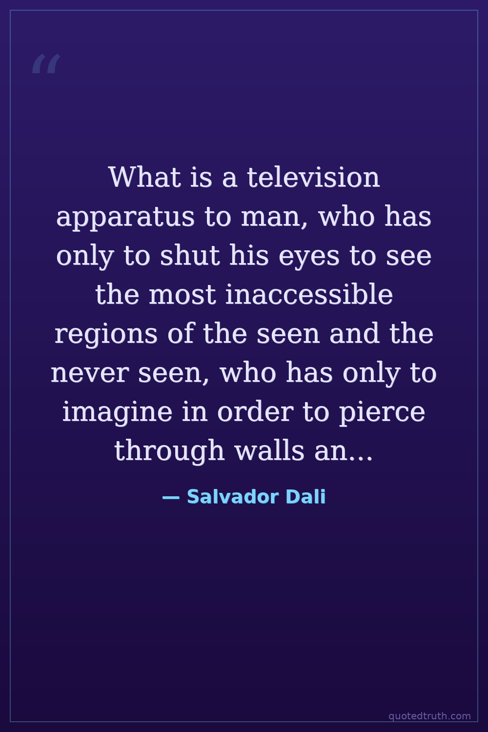 What is a television apparatus to man, who has only to shut his eyes to see the most inaccessible regions of the seen and the never seen, who has only to imagine in order to pierce through walls and cause all the planetary Baghdads of his dreams to rise from the dust.