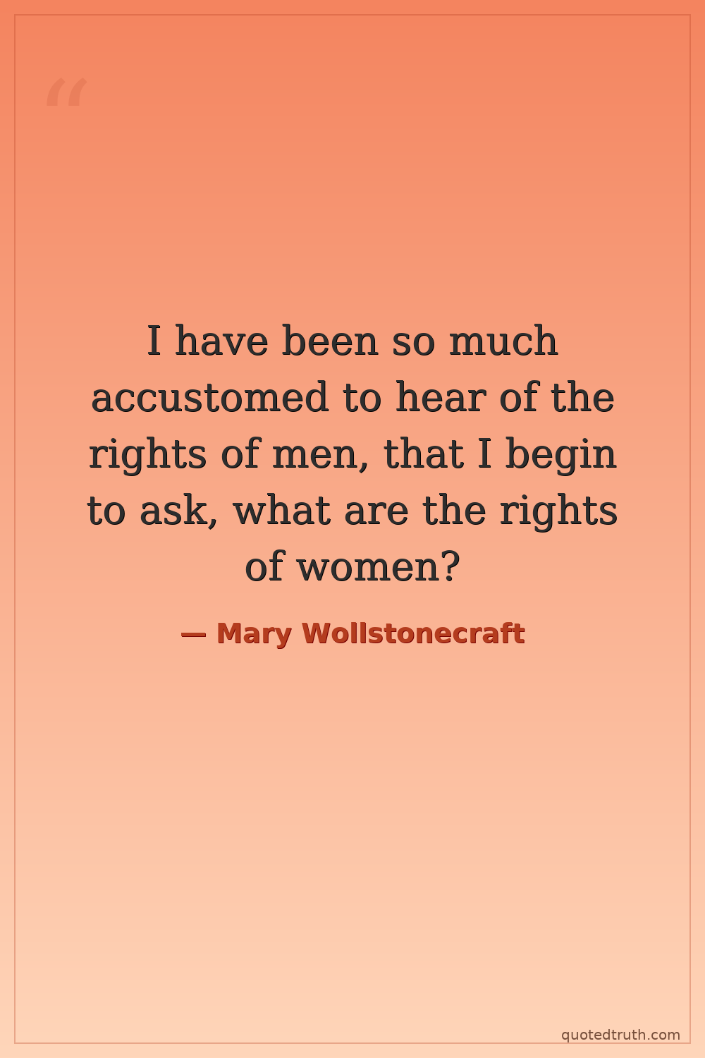 I have been so much accustomed to hear of the rights of men, that I begin to ask, what are the rights of women?
