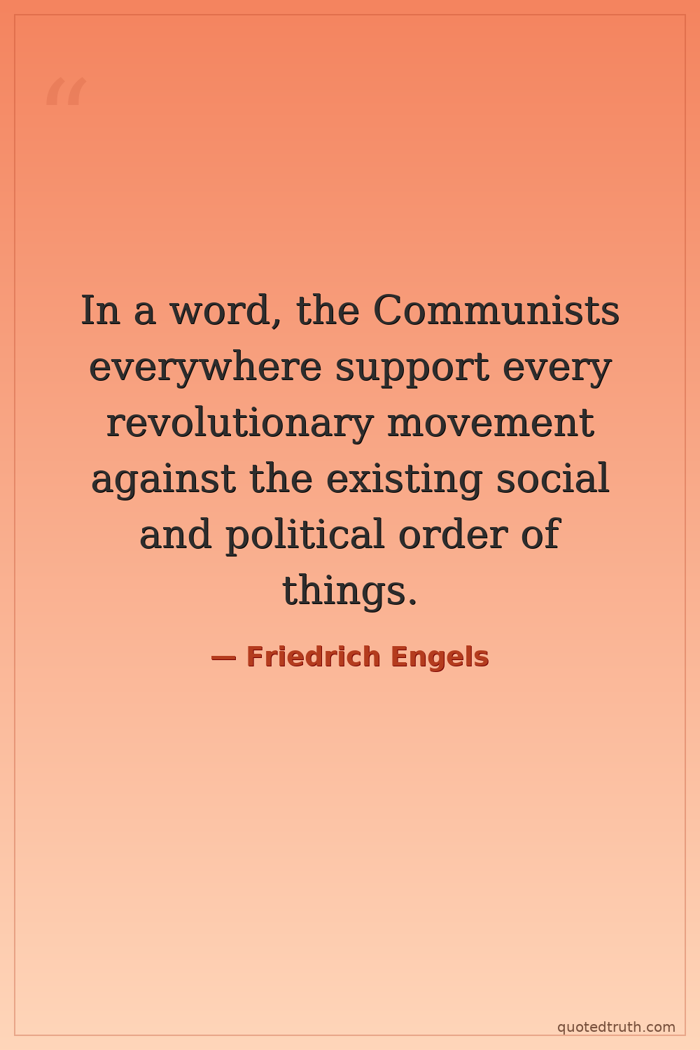 In a word, the Communists everywhere support every revolutionary movement against the existing social and political order of things.