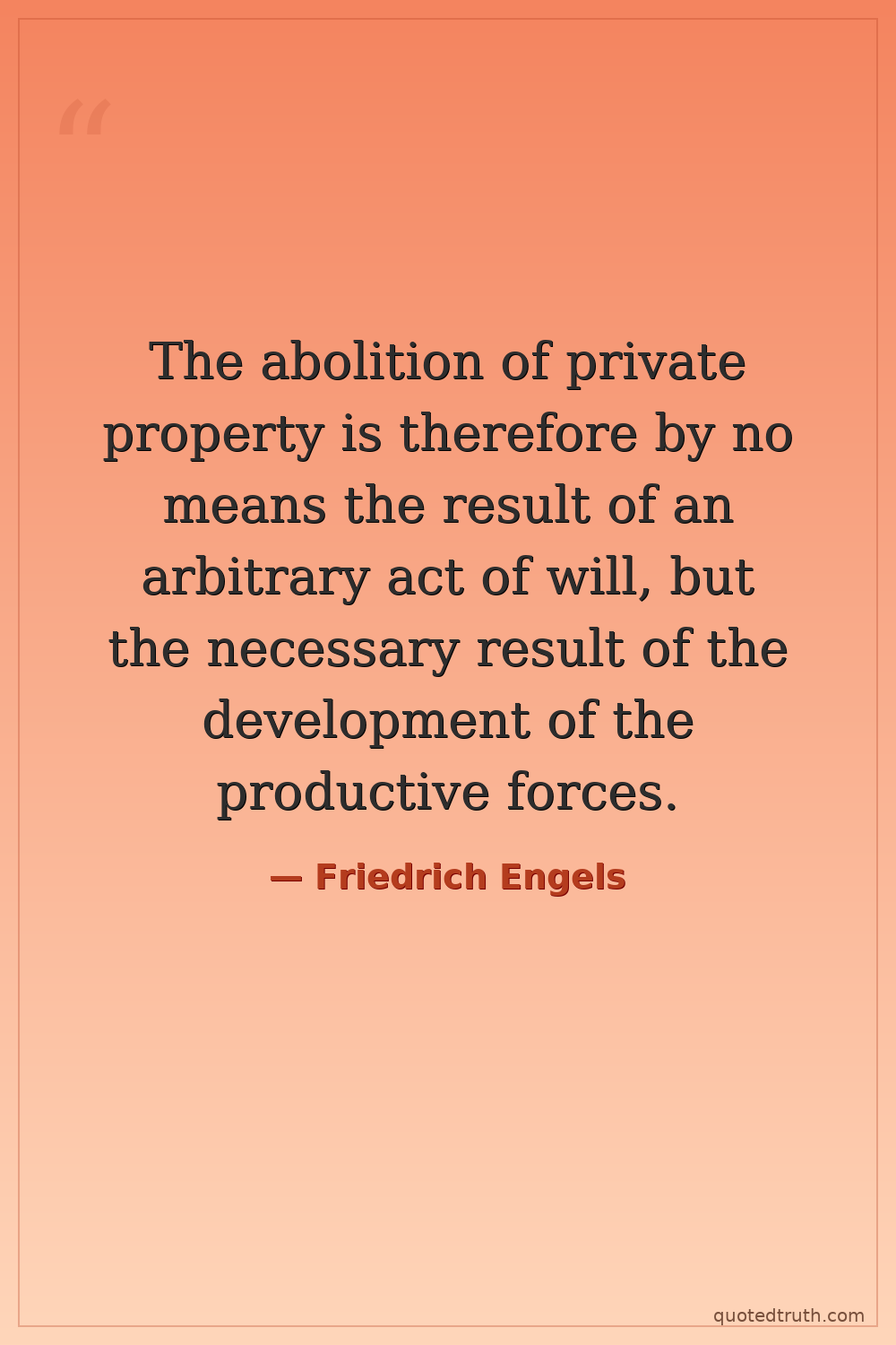 The abolition of private property is therefore by no means the result of an arbitrary act of will, but the necessary result of the development of the productive forces.