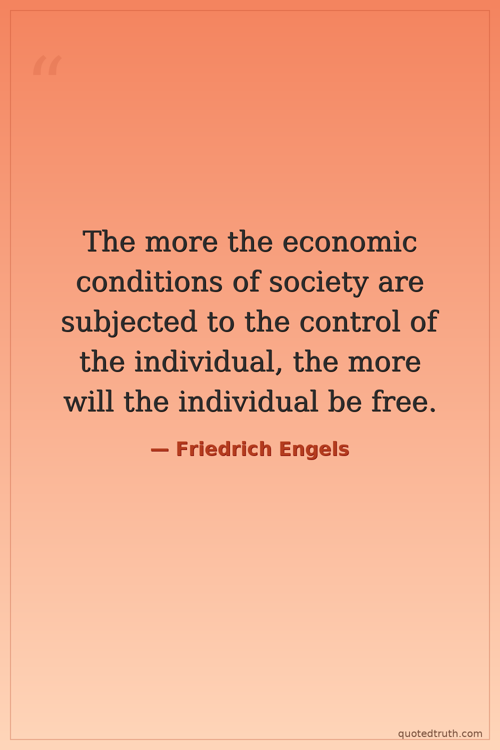The more the economic conditions of society are subjected to the control of the individual, the more will the individual be free.