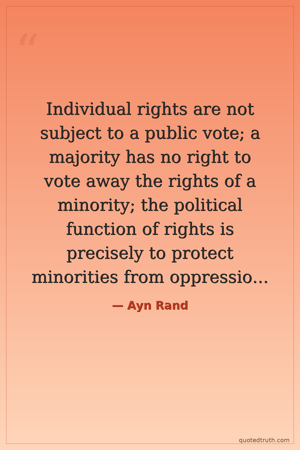 Individual rights are not subject to a public vote; a majority has no right to vote away the rights of a minority; the political function of rights is precisely to protect minorities from oppression by majorities (and the smallest minority on earth is the individual).