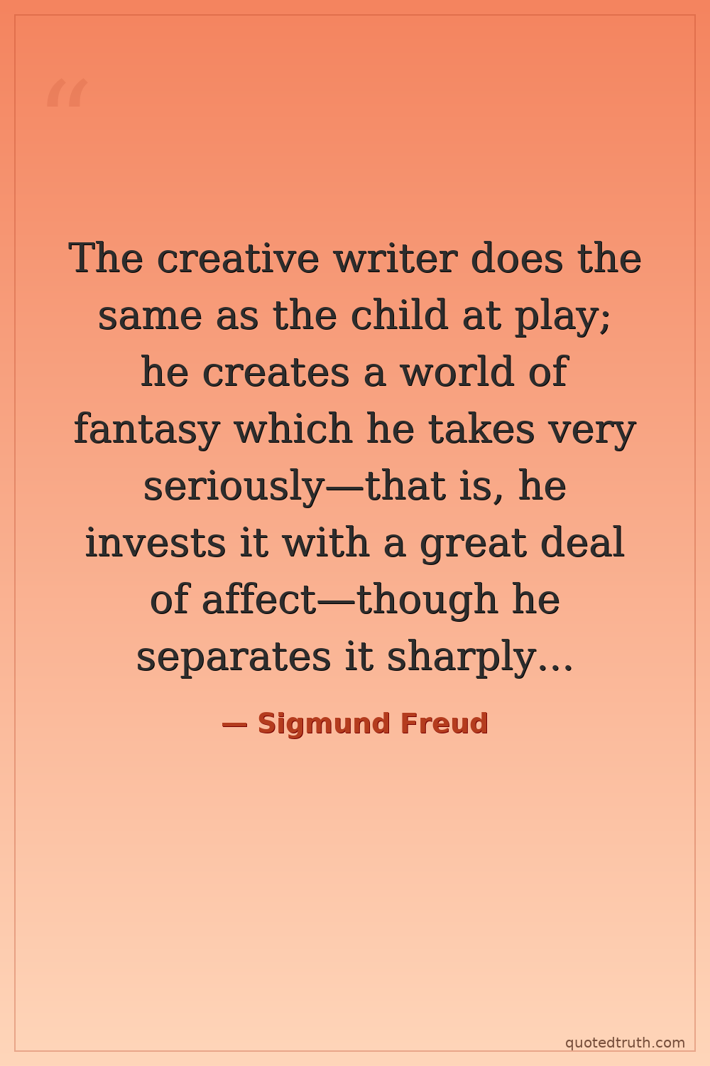 The creative writer does the same as the child at play; he creates a world of fantasy which he takes very seriously—that is, he invests it with a great deal of affect—though he separates it sharply from reality.