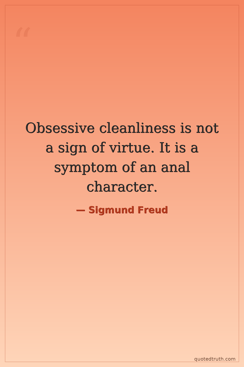 Obsessive cleanliness is not a sign of virtue. It is a symptom of an anal character.