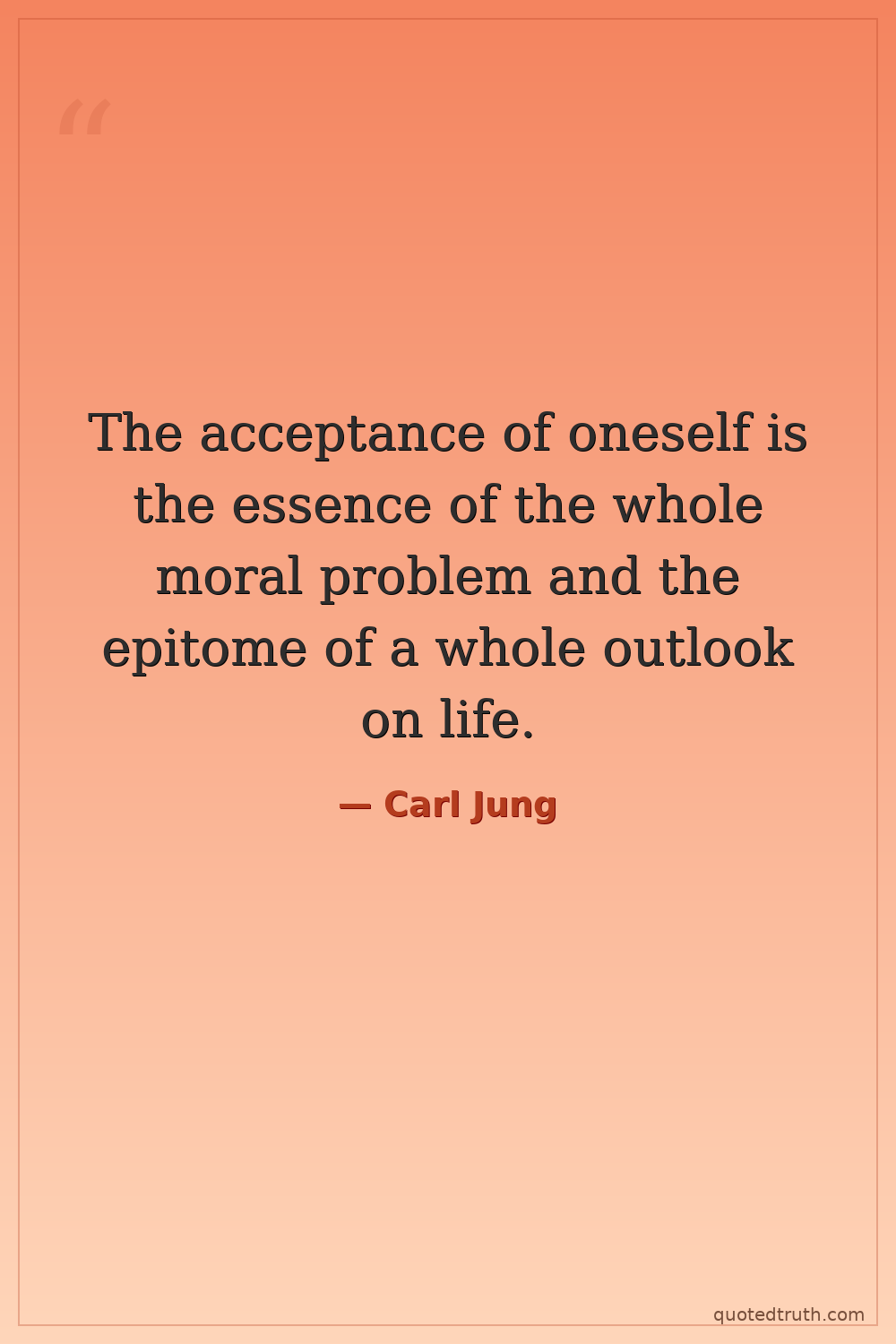 The acceptance of oneself is the essence of the whole moral problem and the epitome of a whole outlook on life.