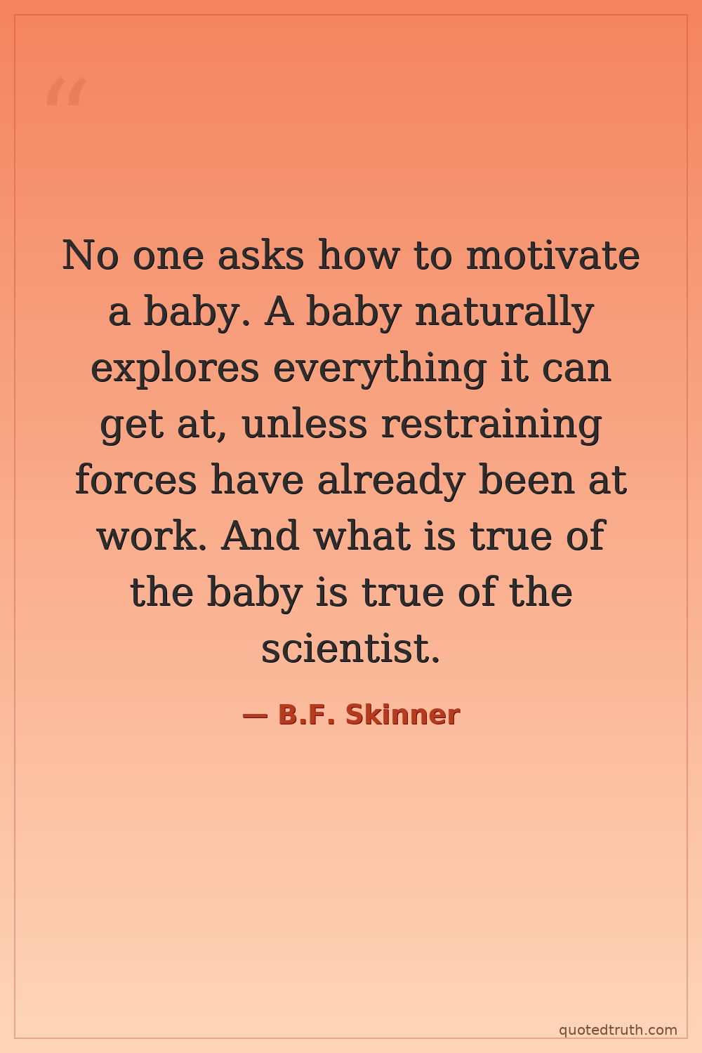 No one asks how to motivate a baby. A baby naturally explores everything it can get at, unless restraining forces have already been at work. And what is true of the baby is true of the scientist.
