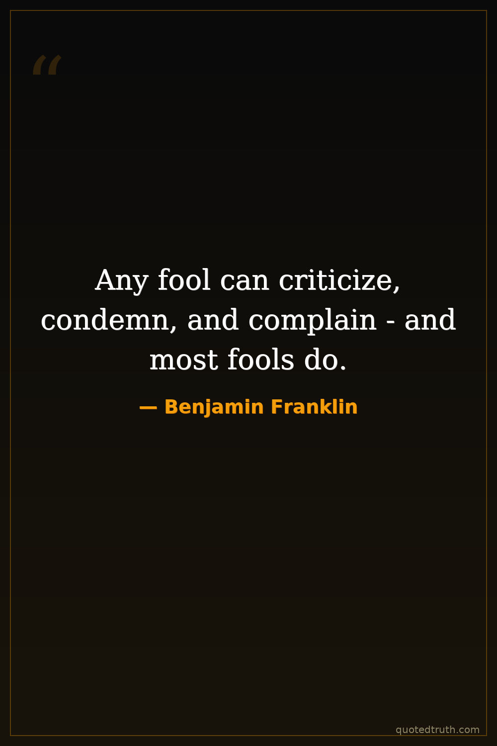 Any fool can criticize, condemn, and complain - and most fools do.