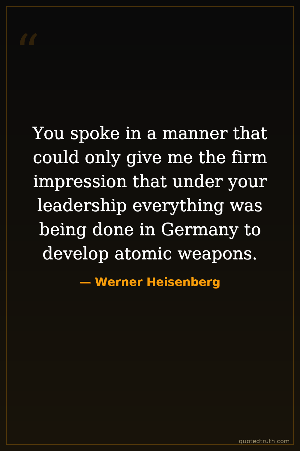 You spoke in a manner that could only give me the firm impression that under your leadership everything was being done in Germany to develop atomic weapons.
