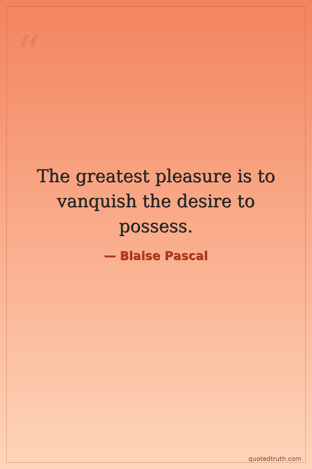 The greatest pleasure is to vanquish the desire to possess.