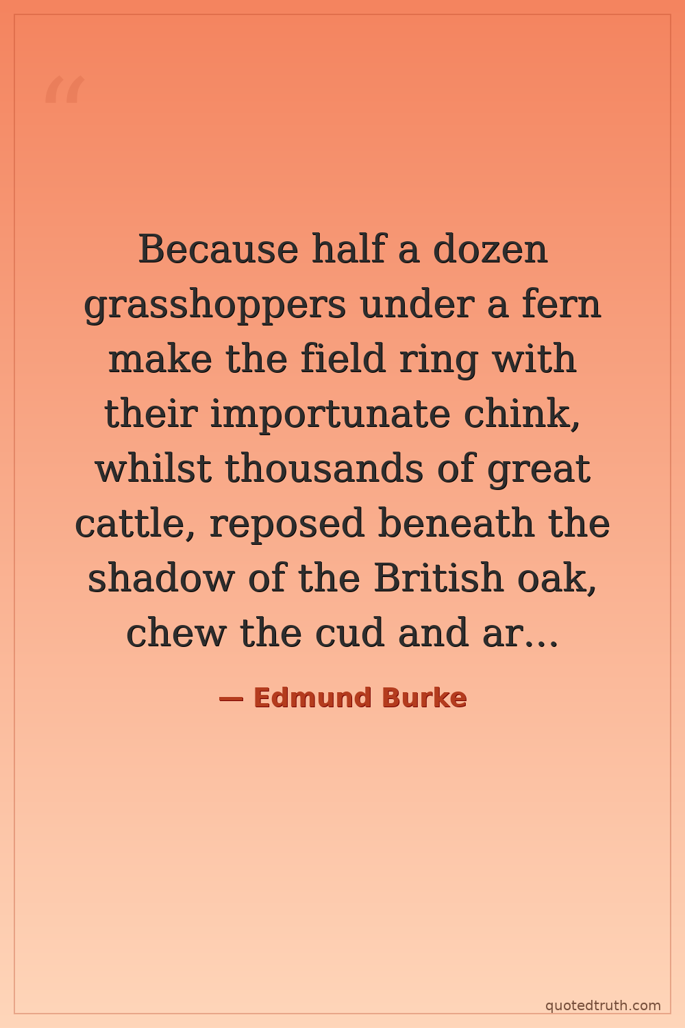 Because half a dozen grasshoppers under a fern make the field ring with their importunate chink, whilst thousands of great cattle, reposed beneath the shadow of the British oak, chew the cud and are silent, pray do not imagine that those who make the noise are the only inhabitants of the field; or that, necessarily, they are even the most numerous.