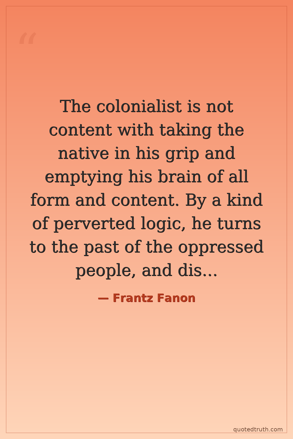 The colonialist is not content with taking the native in his grip and emptying his brain of all form and content. By a kind of perverted logic, he turns to the past of the oppressed people, and distorts, disfigures and destroys it. — Frantz Fanon Modern Postcolonial theory