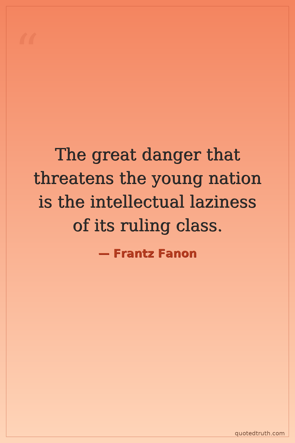 The great danger that threatens the young nation is the intellectual laziness of its ruling class.